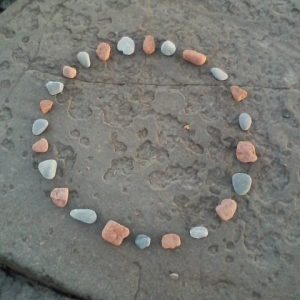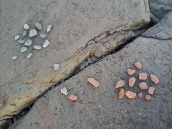 This photo and the one above were taken from the Duluth shoreline of Lake Superior where there is a predominance of red and blue basalt, all forged out of the same volcanic activity in this region. These arrangements were made by Ted Lewis on Election Day of Nov. 2020.