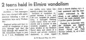 When two 18-year old men rampaged the small town of Elmira, Ontario, in the pre-dawn hours of May 22, 1974, they hardly imagined that their willful damage would help uncover a new way to deal with criminal offenders. 22 properties, with total damages totaling nearly $2,200 in losses (about $12,000 in today’s economy), included damaged cars, slashed tires and broken windows. Assigned to their case were two MCC workers, Mark Yanti and Dave Worth.